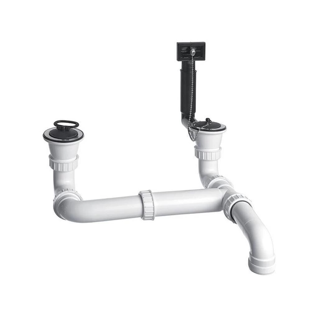 an den Abfluss (Geruchverschluss bzw. Siphon). Für Zwei-Becken-Spülen reversibel