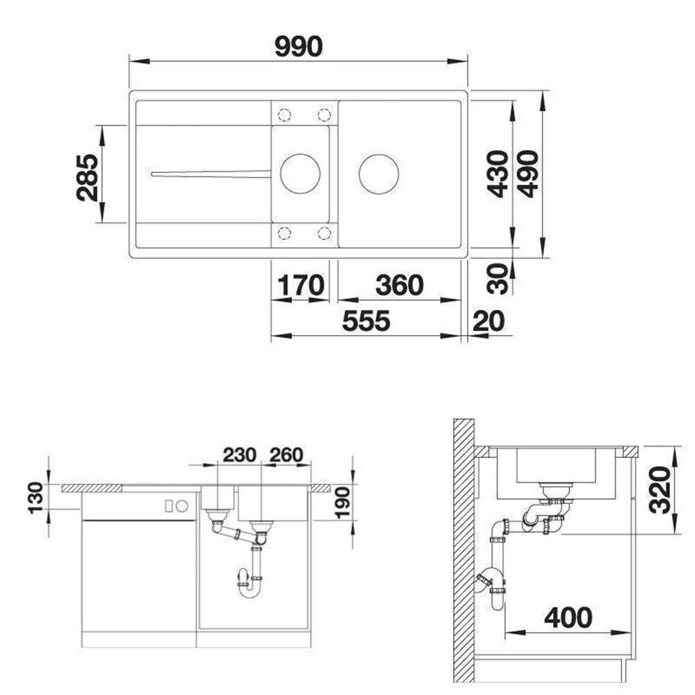 - Beckengröße: 360 x 430 x 190 mm / 170 x 285 x 130 mm