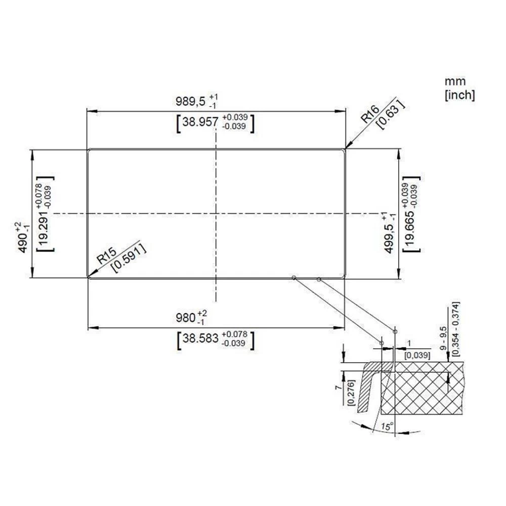 - Ausschnittmaße: 989,5 x 499,5 mm