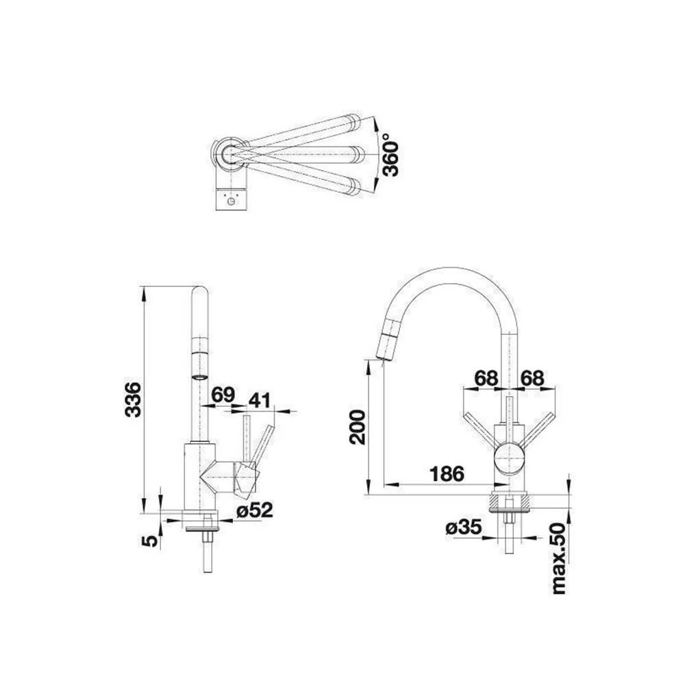 - Erweiterter Aktionsradius durch 360 Grad schwenkbaren Auslauf