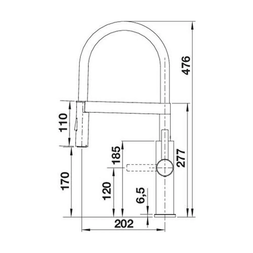 - Höhe der Armatur: 476 mm