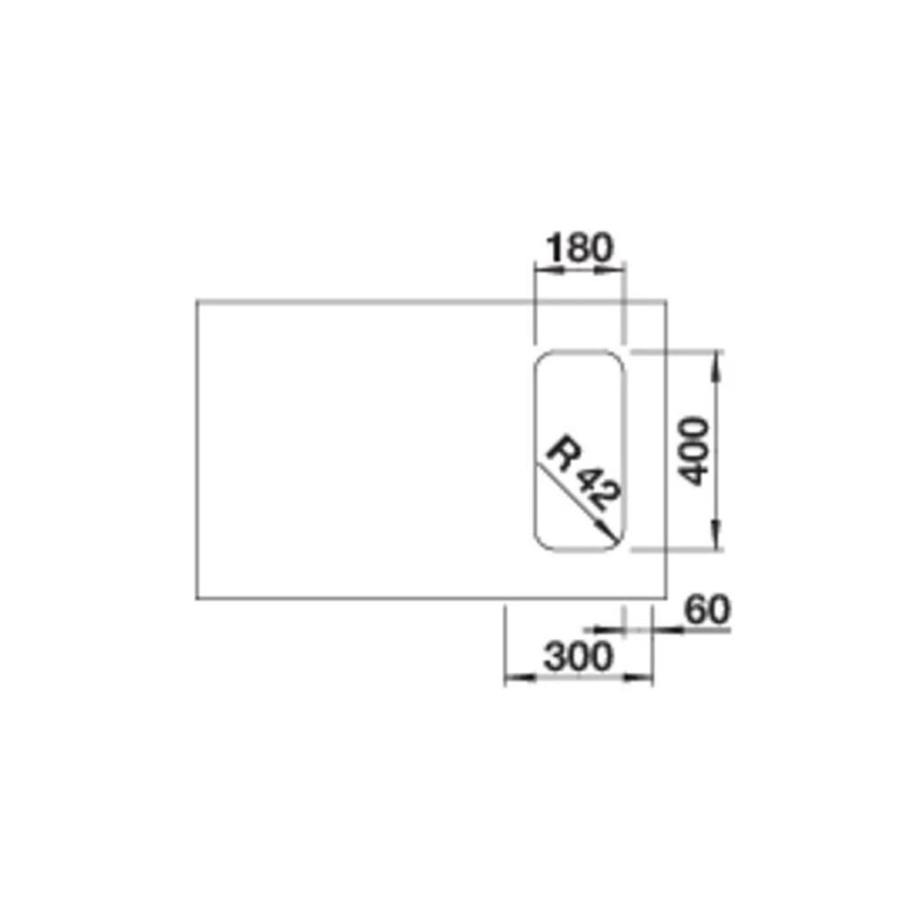 - Ausschnittmaße: 180 x 400 mm, Ecken R=42 mm
