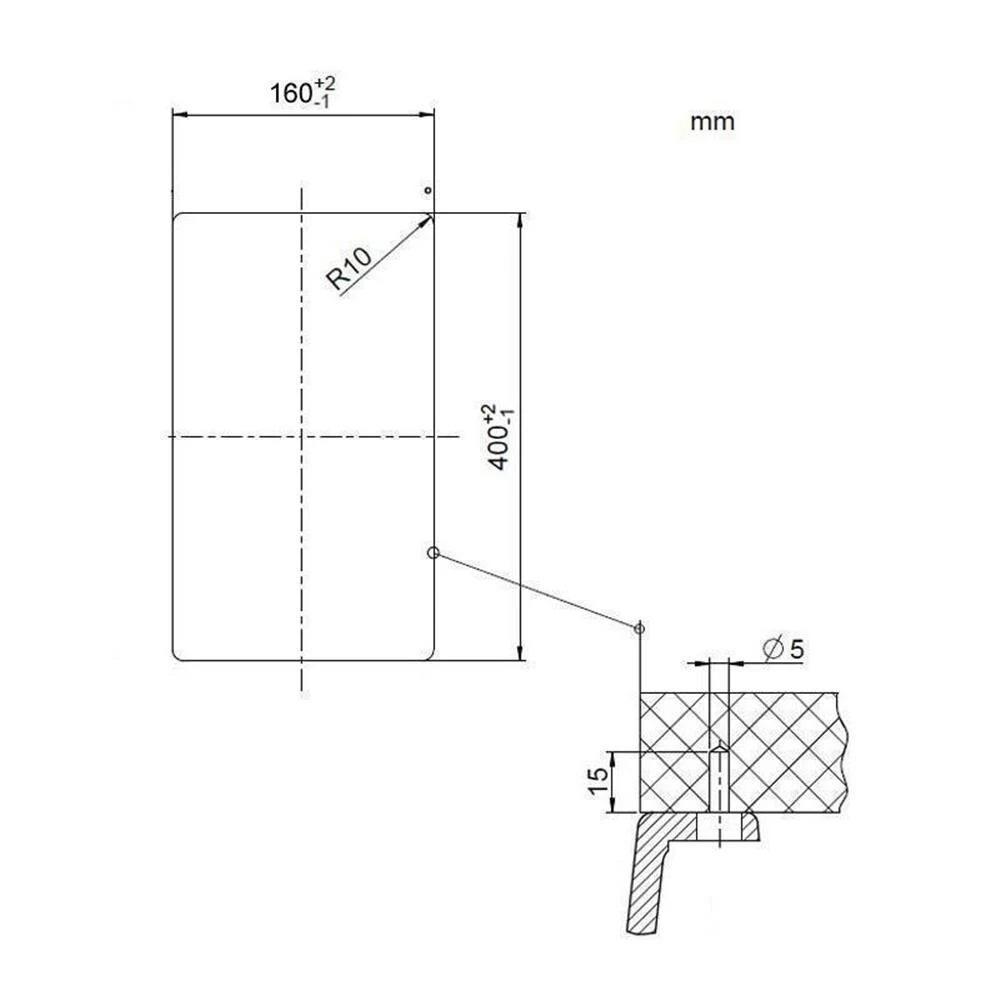 - Ausschnittmaße: 160 x 400 mm / Eckenradius R=10 mm