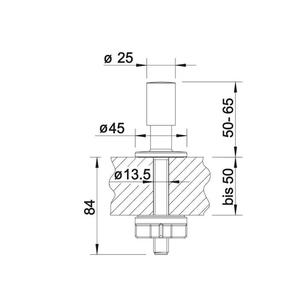 - einsetzbar über Bohrung ab d=14 mm (Mindest-Durchmesser) bis d=35 mm (Standard-Hahnlochbohrung)