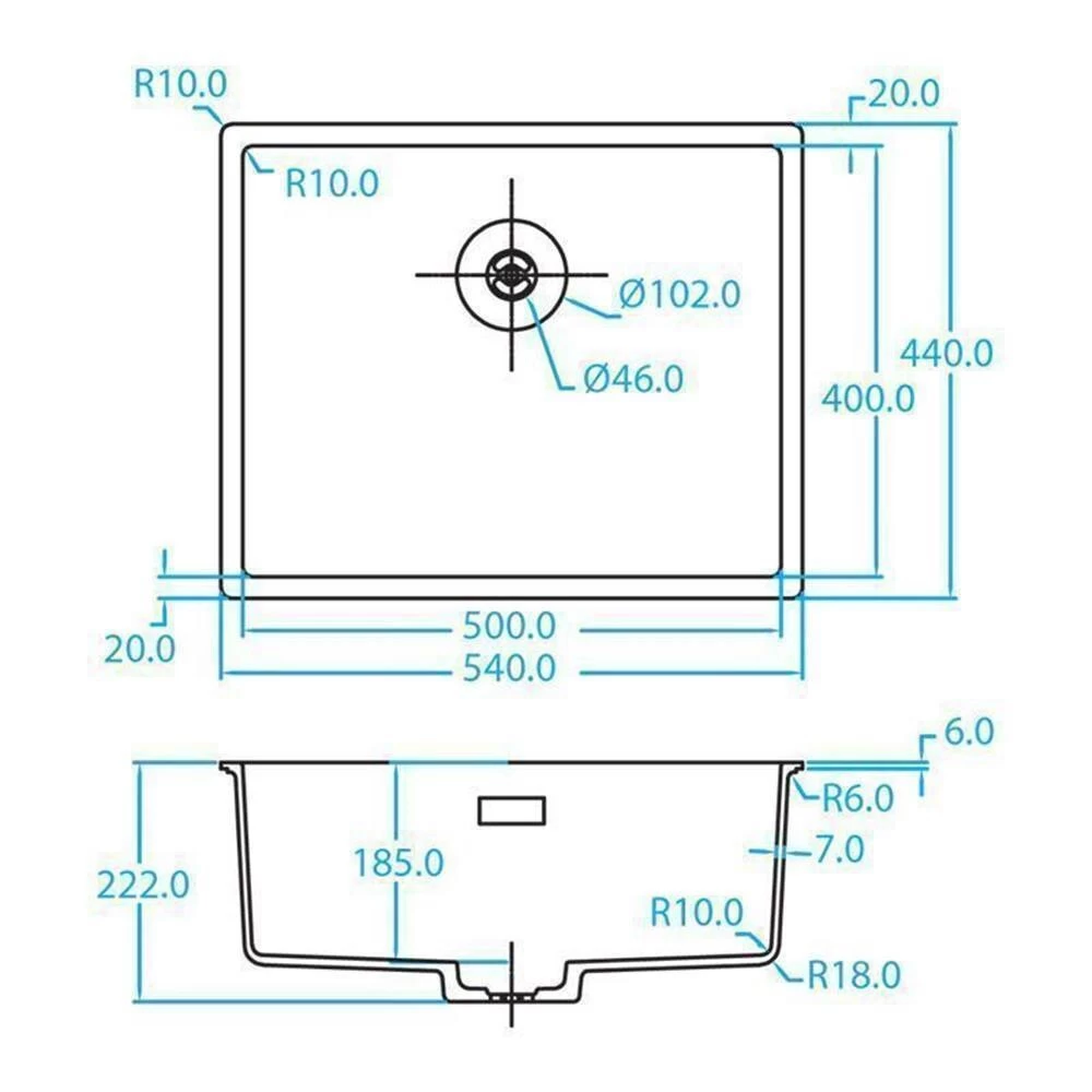 Caressi Einbauspüle CAGR50BW-FL Black und White Line 54 x 44 cm