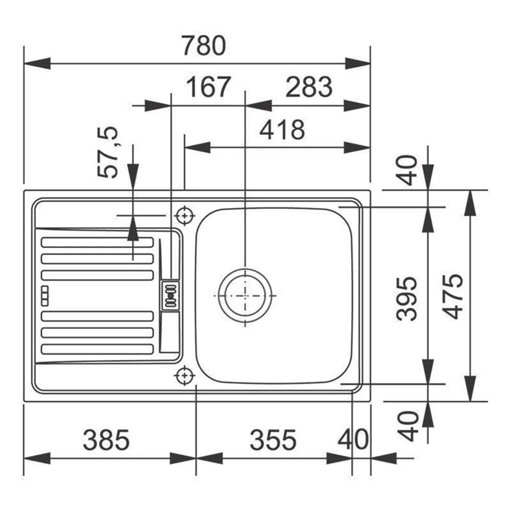 - Spülenmaß: B 780 x T 475 mm