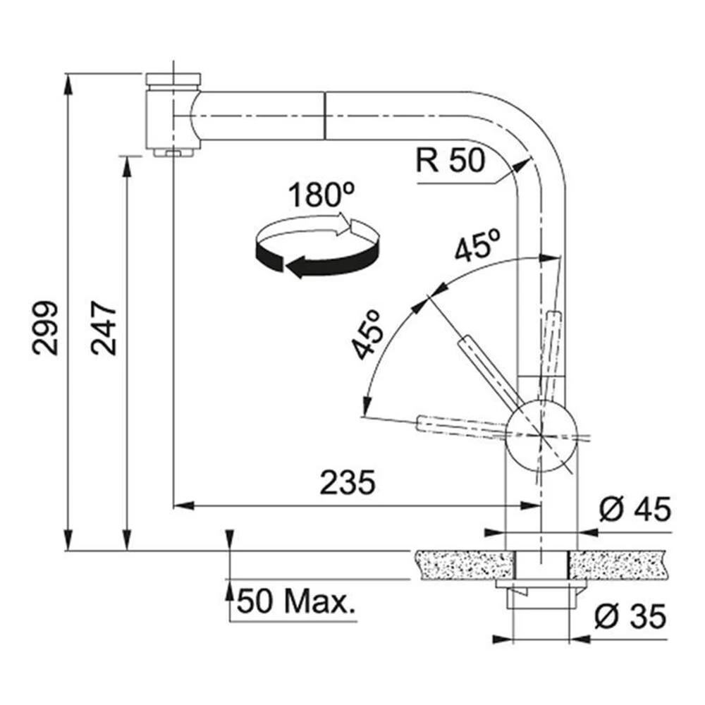 - Dank des 0-90 Grad Bediengriffes ist eine wandnahe Montage möglich