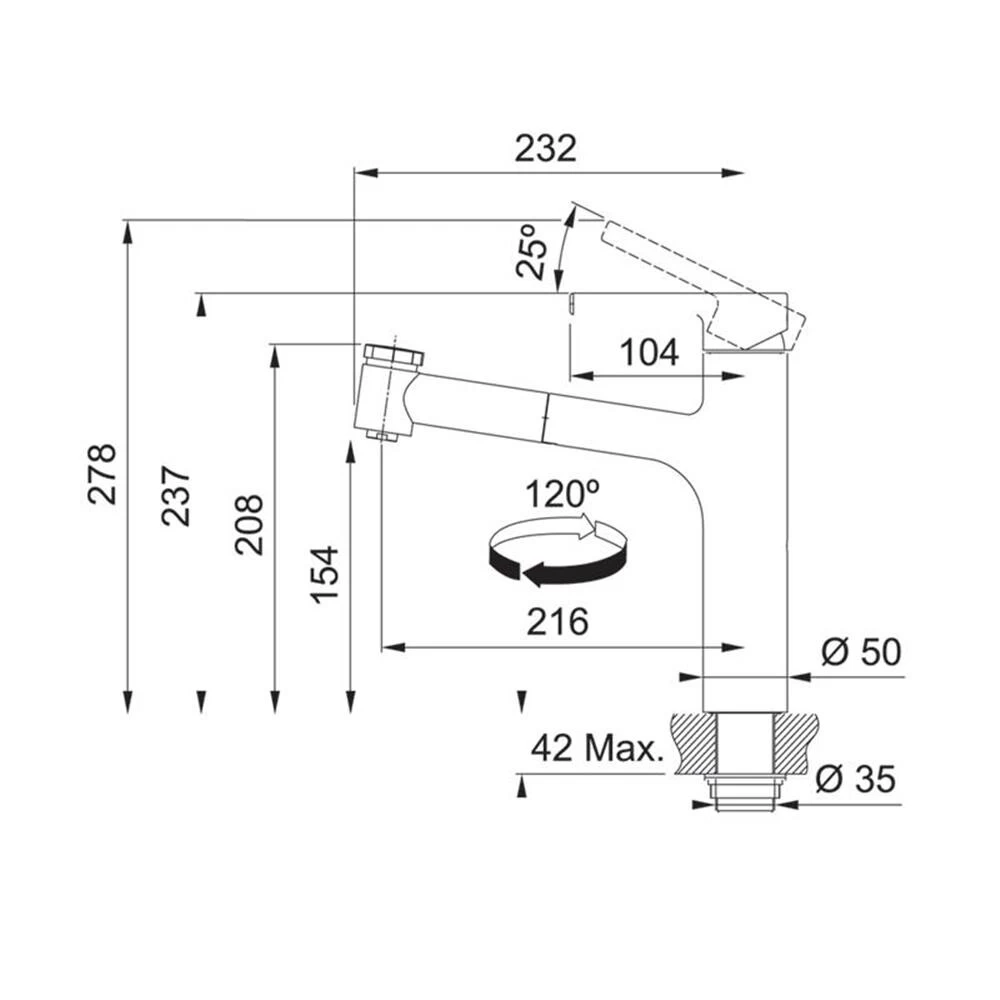 - Schwenkbereich: 120 Grad