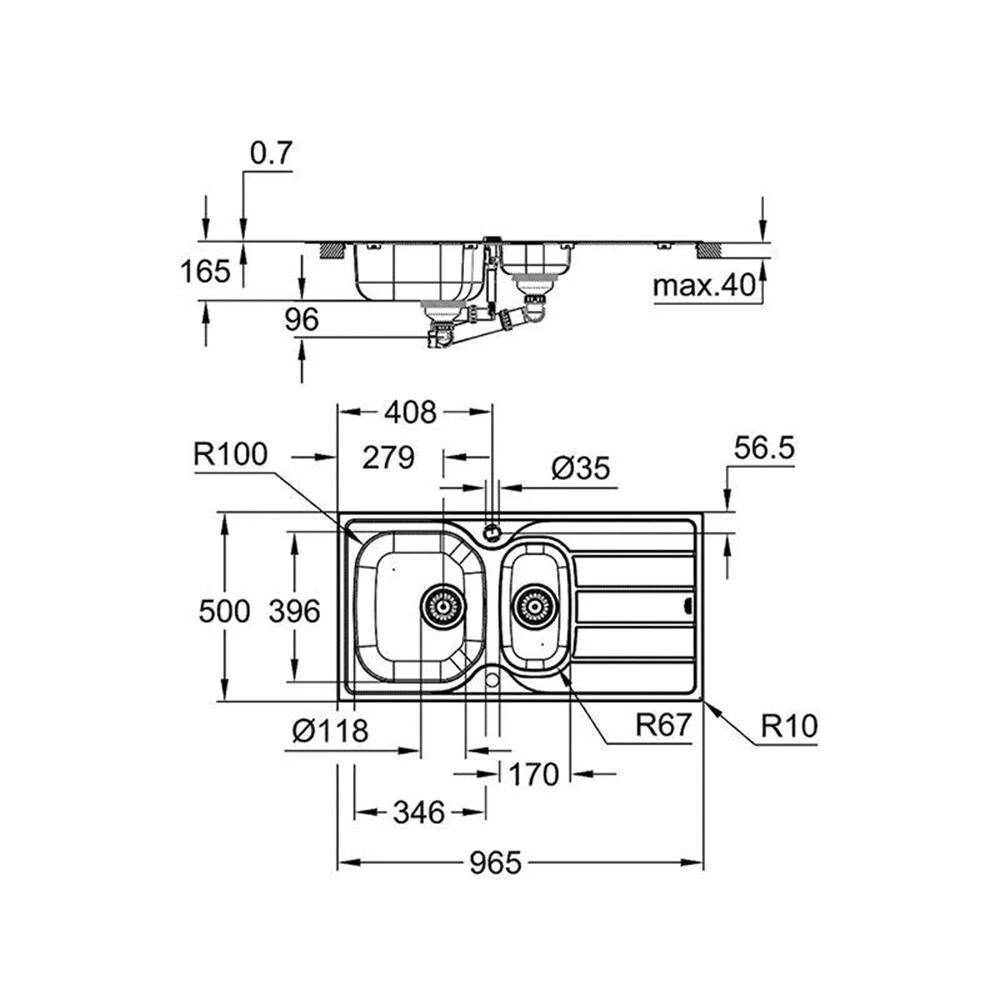 Grohe Einbauspüle K200 60-S 96,5/50 1.5 rev, Edelstahl
