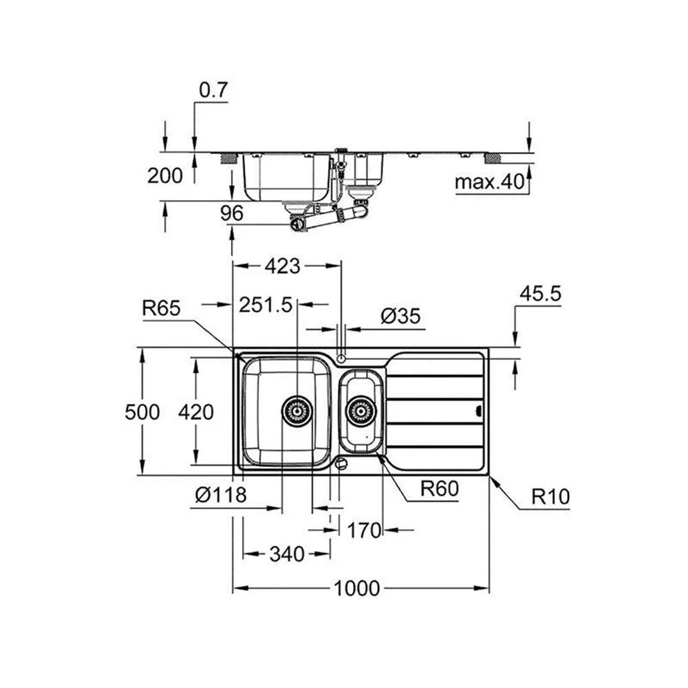 Grohe Einbauspüle K500 60-S 100/50 1.5 rev, Edelstahl
