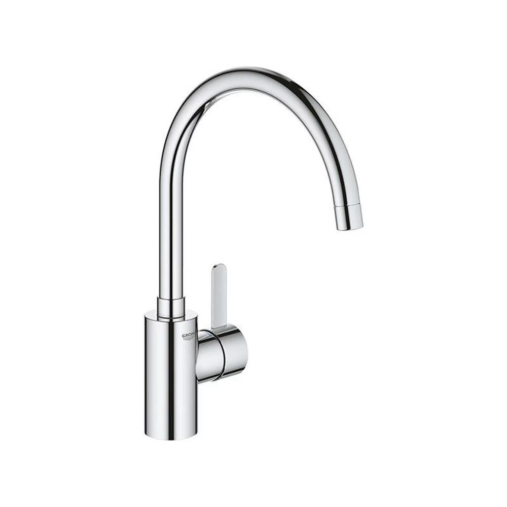 Die fließende Form und die intelligenten Funktionen zeichnen die Grohe Eurosmart Cosmopolitan Küchenarmatur aus. Der Wasserfluss wird mit dem robusten Metallhebel geregelt und der hohe Auslauf ist perfekt geeignet zum Befüllen von großen Töpfen und Pfannen.