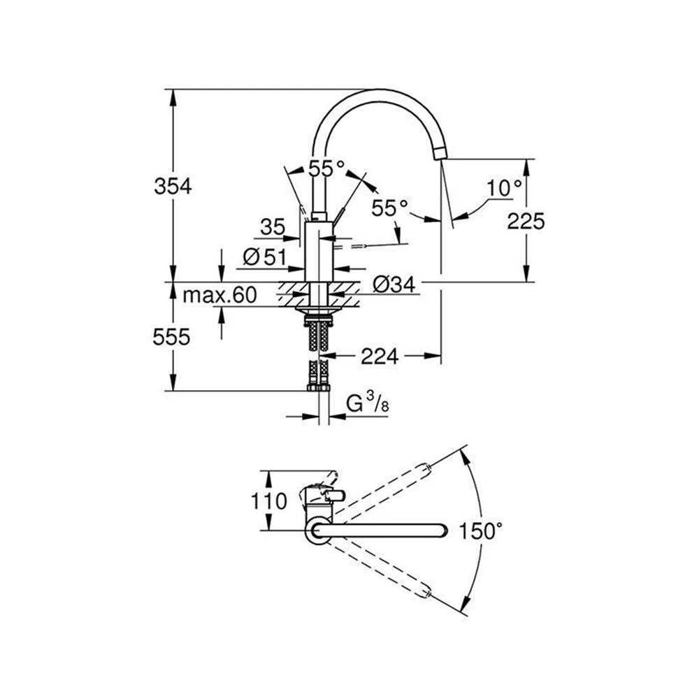 Grohe Küchenarmatur Eurosmart Cosmopolitan, C-Auslauf