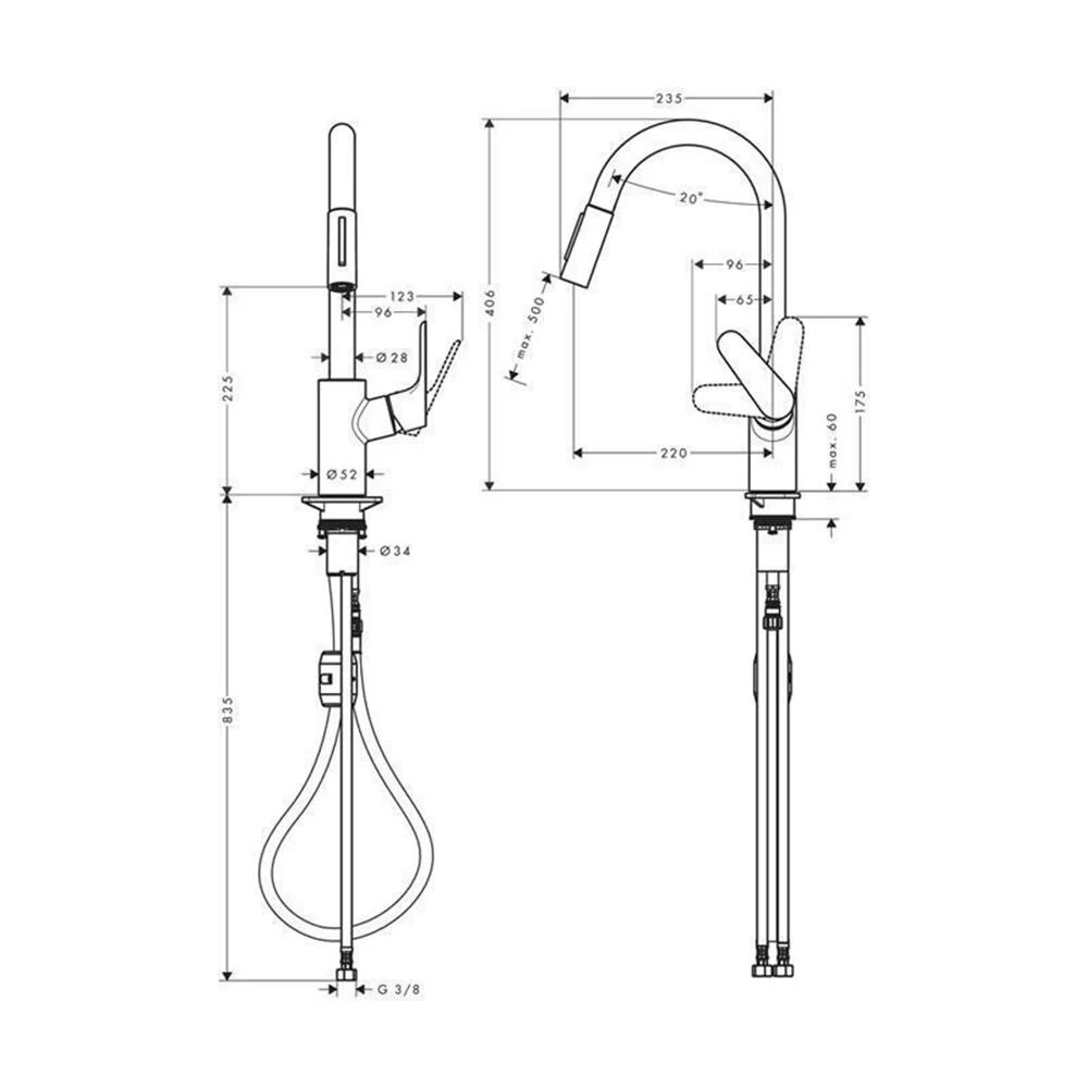 hansgrohe Küchenarmatur 240 Focus M41 | ausziehbarer Schlauch mit Brausefunktion