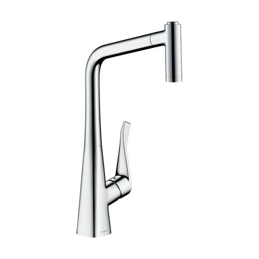 hansgrohe Küchenarmatur 320 Metris M71 | ausziehbarer Schlauch mit Brausefunktion | mit Schlauchbox (sBox) – Hohe Küchenarmatur mit extra langem Ausziehauslauf dank Schlauchbox