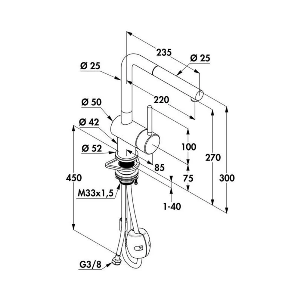 - Höhe der Armatur: 300 mm
