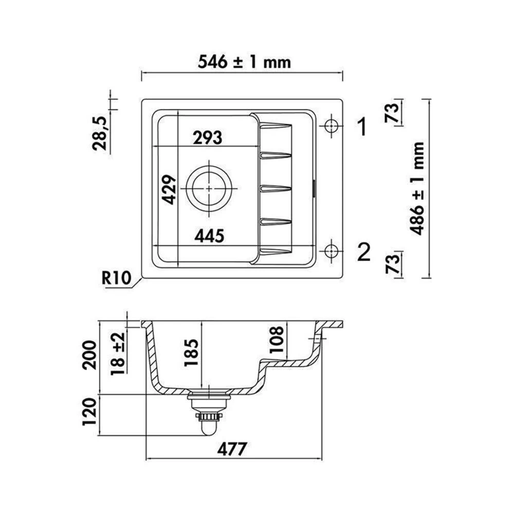 - Spülenmaß: 546 x 486 mm R10 (+- 1 mm)