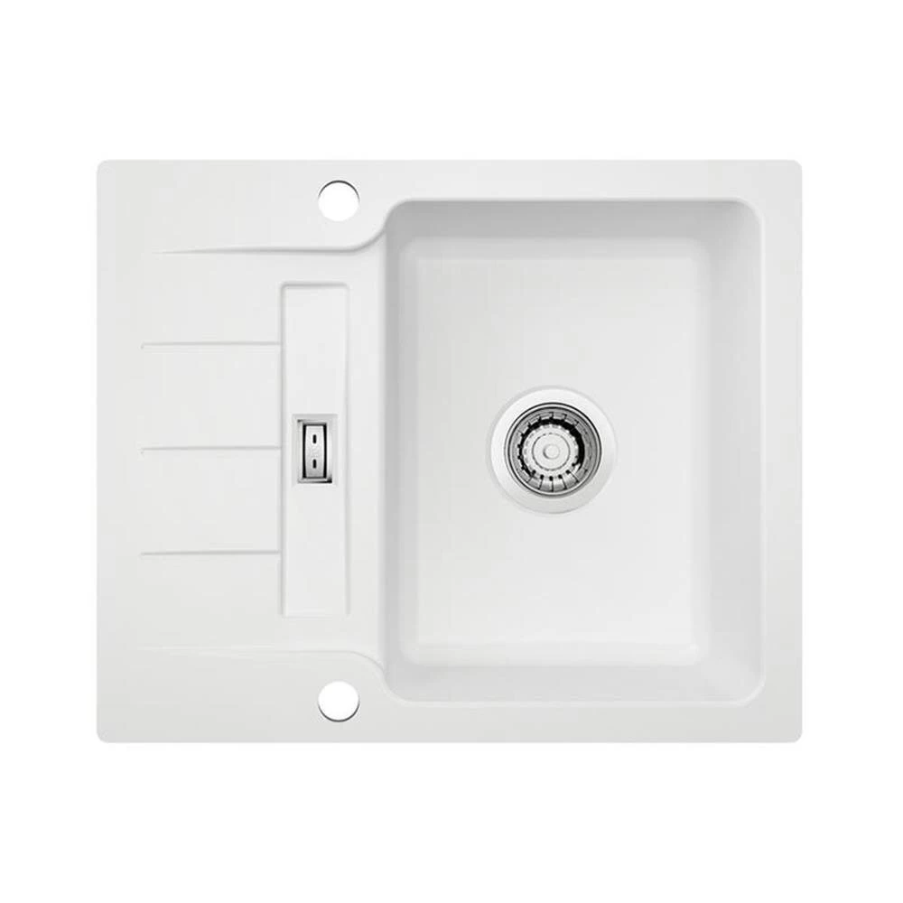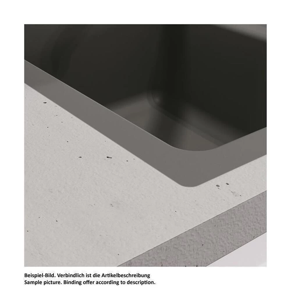 Einbauspüle, flächenbündig. Keramik, Einzelbecken mit kleiner Abtropffläche, reversibel, 3½“ Korbventil mit Premium-Drehexzentergarnitur verchromt, 5 Jahre Garantie auf Herstellungsfehler Design by Hans Winkler Design, Grafenau.