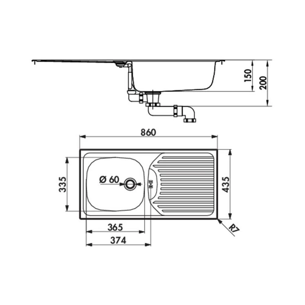 - Beckenmaß: 365 x 335 x 150 mm (B x T x H)