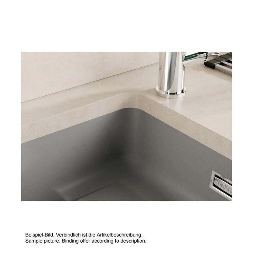 Wird die Unterbauspüle geklebt, können dünnere Arbeitsplatten verwendet werden. - Spülenmaß: 489 x 486 mm (+- 1 mm Toleranz)