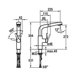 Naber KWC Küchenarmatur Luna E5 Fensterarmatur Mit Herausziehbarer Schlauchbrause Chrom Hochdruck