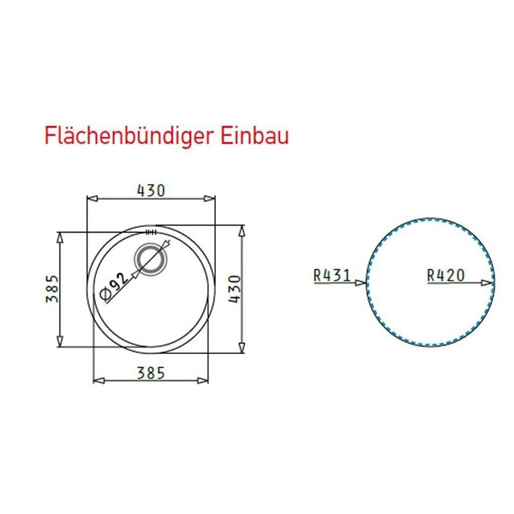 - Spülenmaß: Durchmesser 430 mm