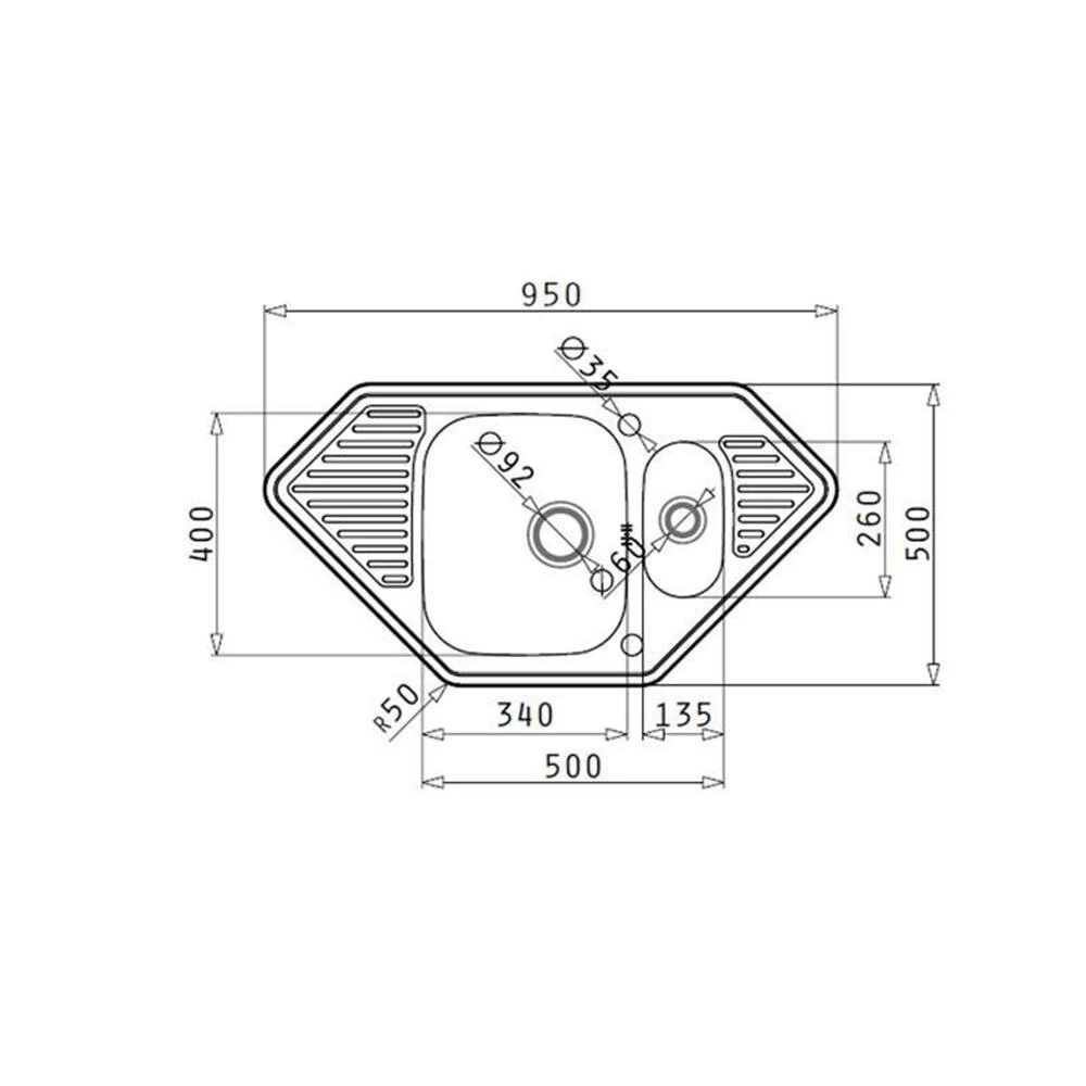 - Beckenabmessung: 340 x 400 x 180 mm / 135 x 260 x 100 mm