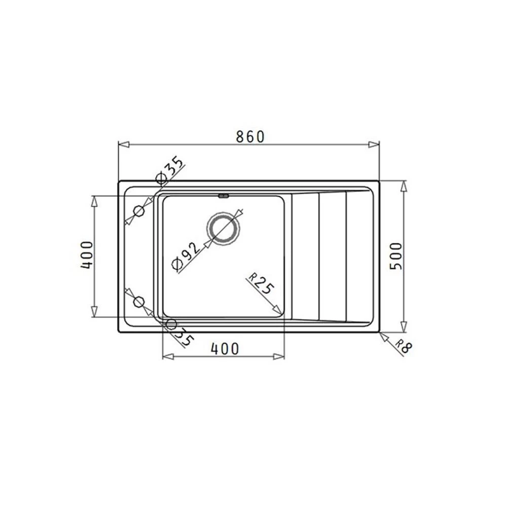 - 2 Hahnlöcher (für Küchenarmatur und Excenter-Drehknopf)
