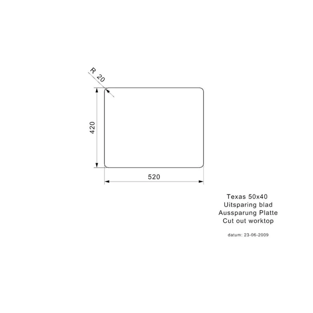 - Ausschnittmaße aufliegender Einbau: 520 x 420 mm