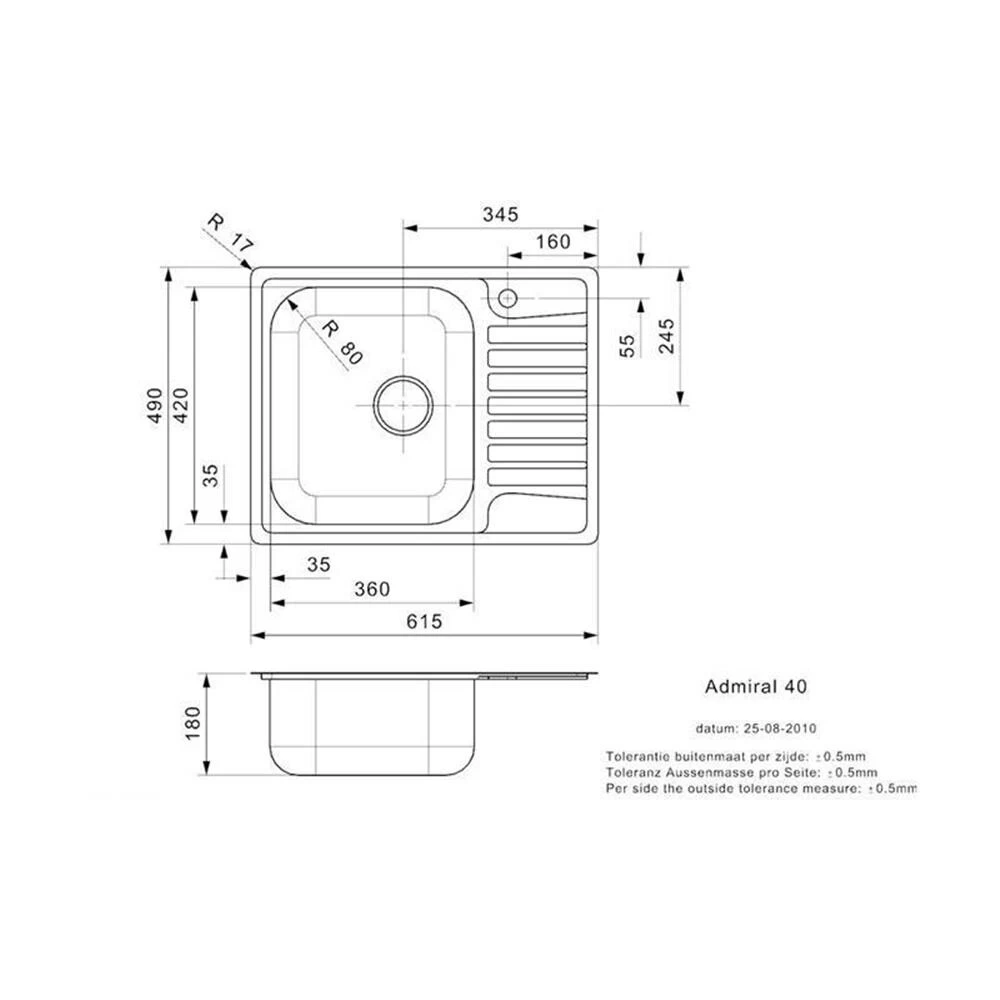 - Ausschnittmaße flächenbündiger Einbau: 616 x 491 mm R17,5