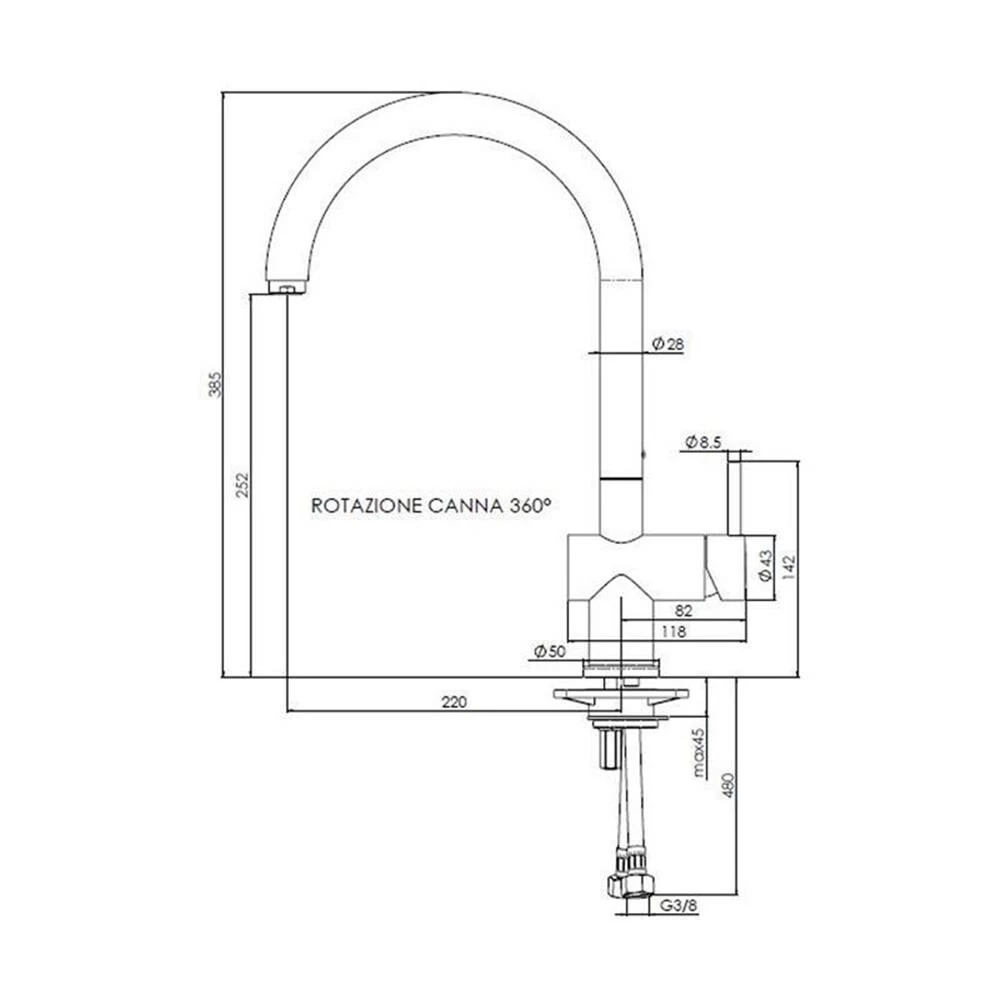 | Höhe der Armatur (mm) | 385 |