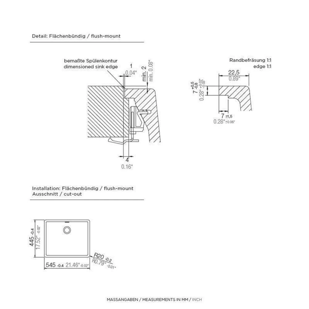 - Ausschnitt Flächenbündig: 547 x 447 mm