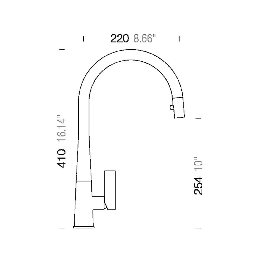 Das konische, sich nach oben verjüngende Design der Armatur Gota endet in einem modernen, bogenförmigen Auslauf. Der Designanspruch wird durch ein echtes Ausrufezeichen unterstrichen: Der Griff in seiner außergewöhnlichen Tropfenform.