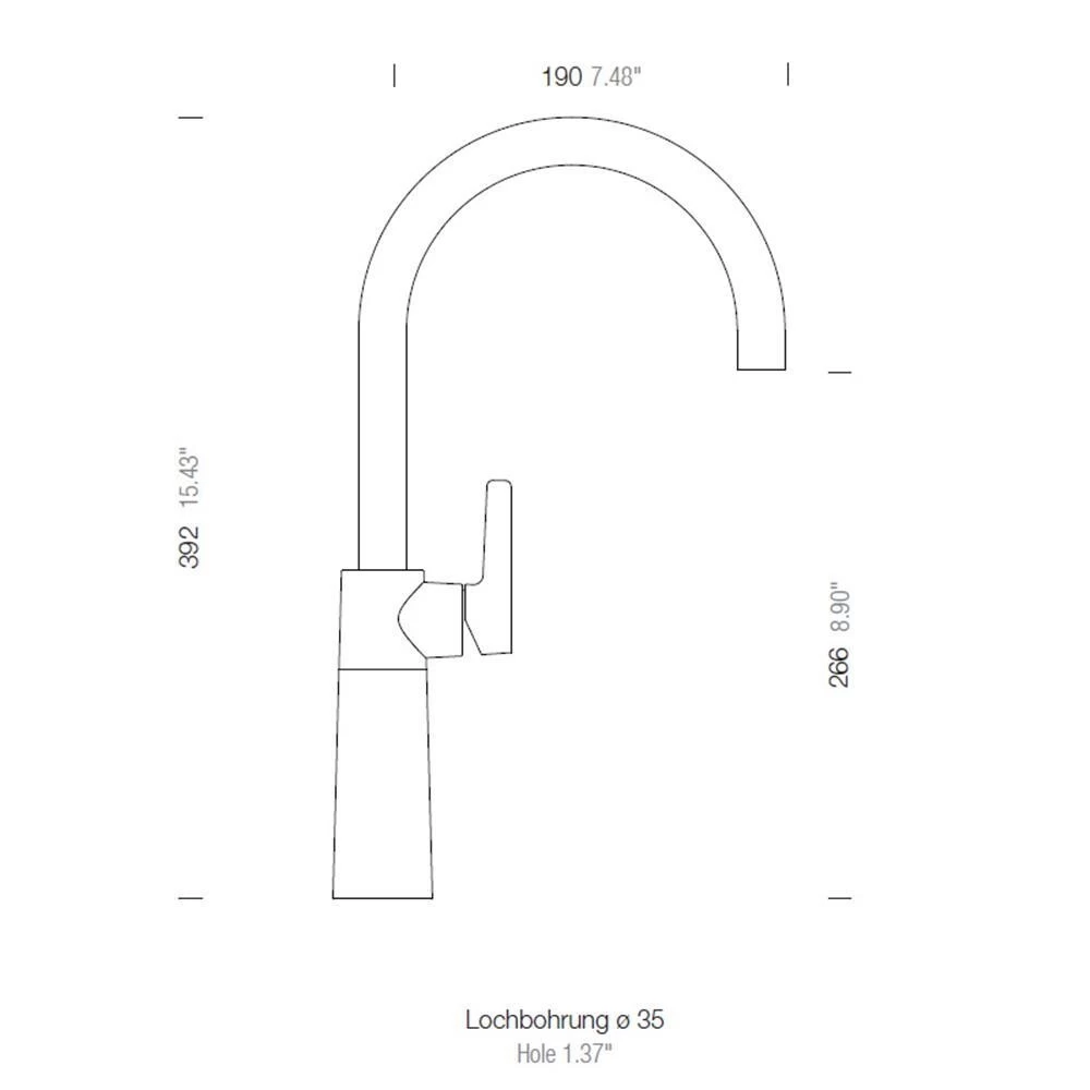 - Höhe der Armatur: 392 mm