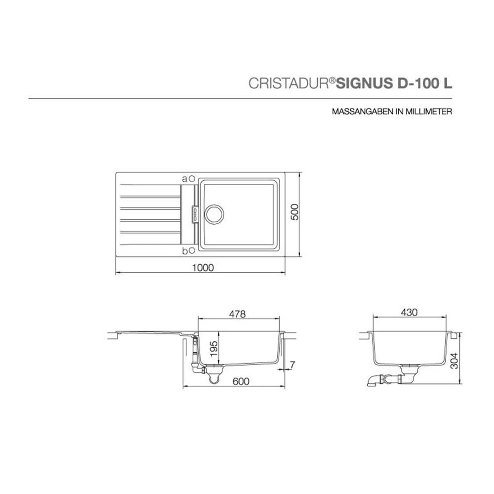 - Spülenmaß: B 1000 x T 500 mm