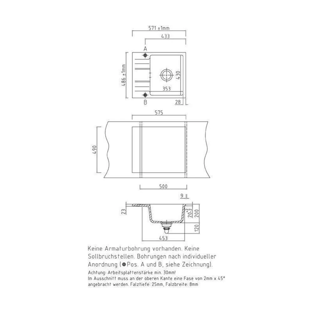 - Wir empfehlen, diese Bohrungen zusammen mit der Spüle zu bestellen.