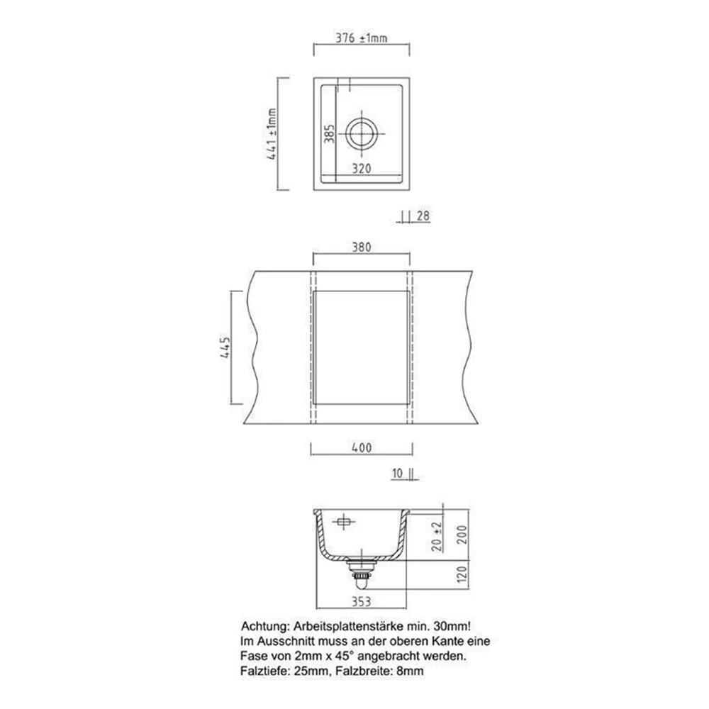 - Die Versiegelung ist optisch nicht sichtbar und reibt sich durch den Gebrauch der Spüle im Laufe der Jahre ab.