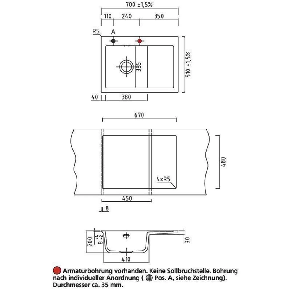 - Die Versiegelung ist optisch nicht sichtbar und reibt sich durch den Gebrauch der Spüle im Laufe der Jahre ab.