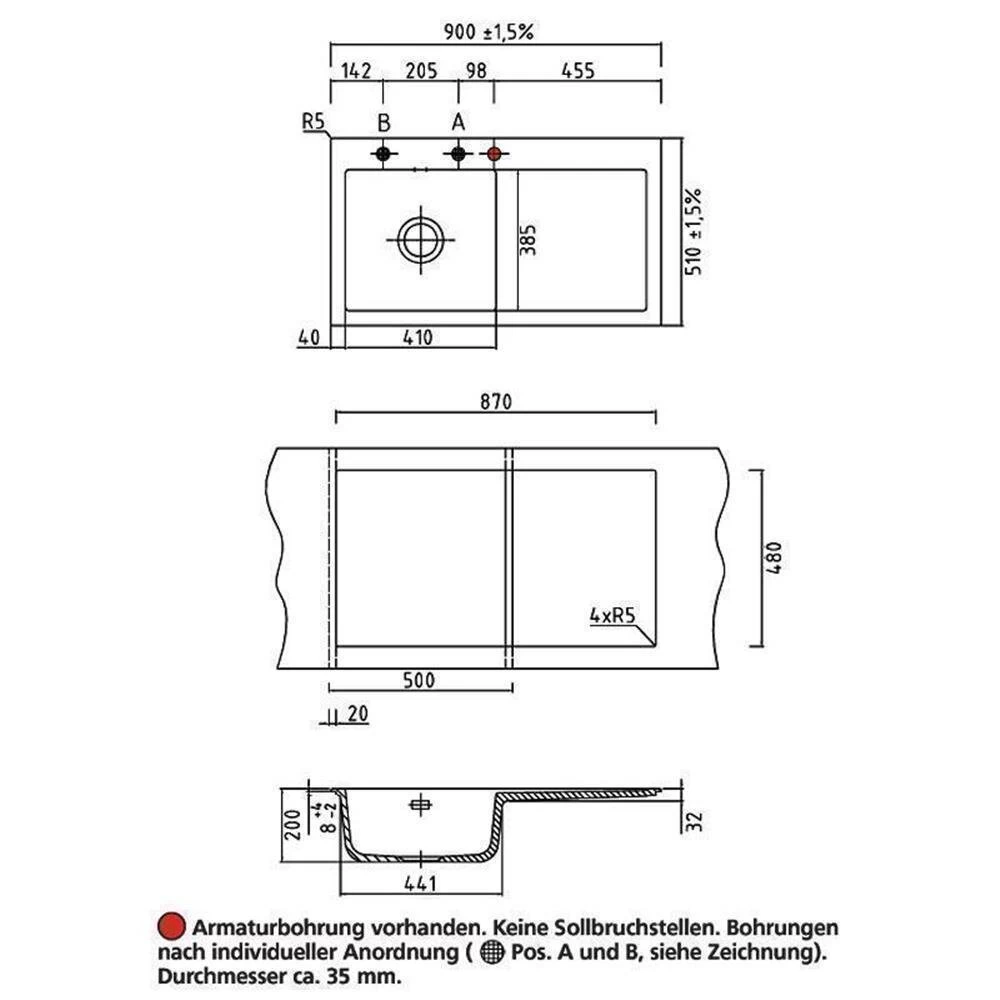 - Die Versiegelung ist optisch nicht sichtbar und reibt sich durch den Gebrauch der Spüle im Laufe der Jahre ab.