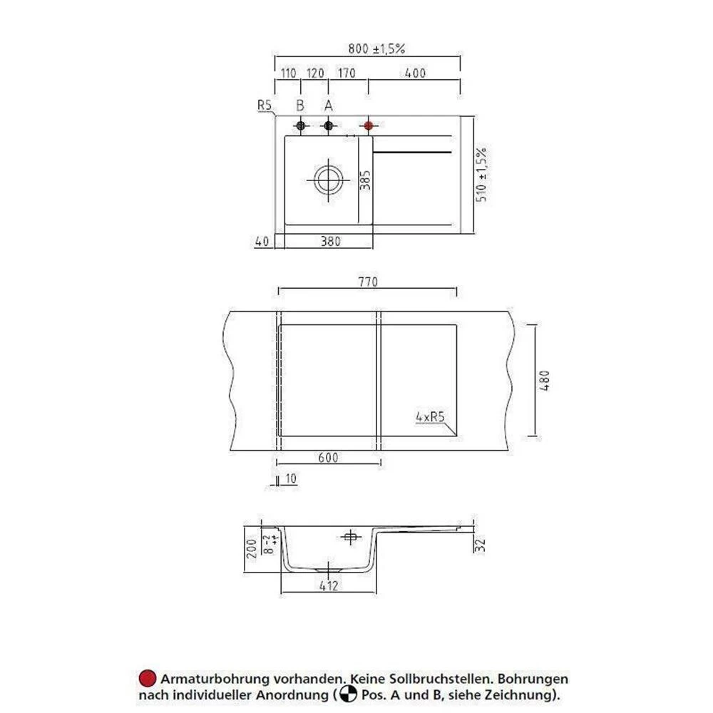 - Die Versiegelung ist optisch nicht sichtbar und reibt sich durch den Gebrauch der Spüle im Laufe der Jahre ab.