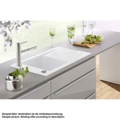 >> Flächenbündige Spüle (also flächenbündig mit der Arbeitsplatte einbaubar).