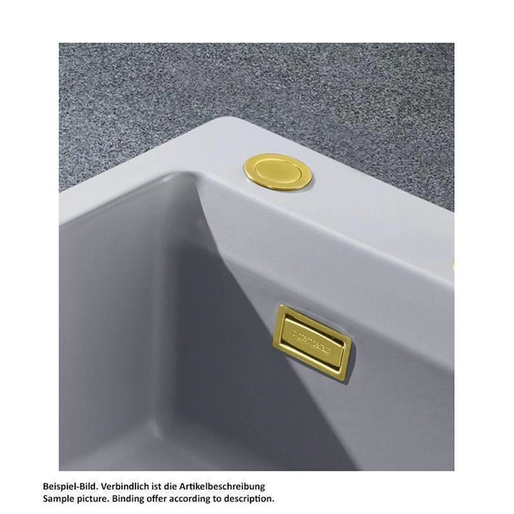 Zur Aufwertung von Spülen und Becken in harmonischer Optik mit Mischbatterien, Spülmittelspender und Excenterknöpfe in verschiedene Oberflächen