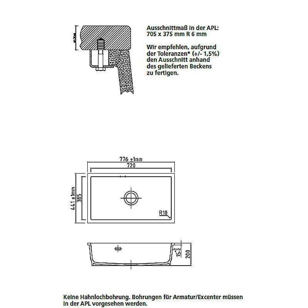- Bohrung für Armatur muss in der Arbeitsplatte vorgesehen werden