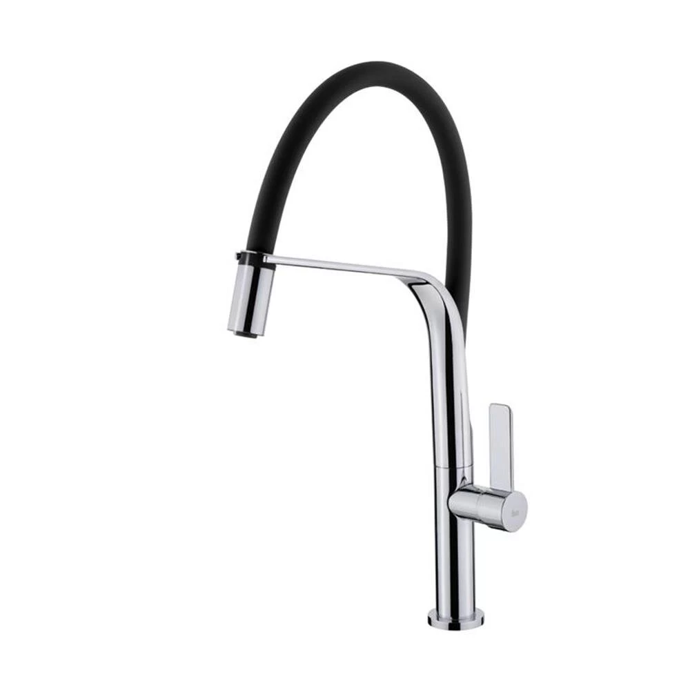 Teka Küchenarmatur FO 997 FN Chrom/Schwarz, schwenkbarer Auslauf, Geschirrbrause