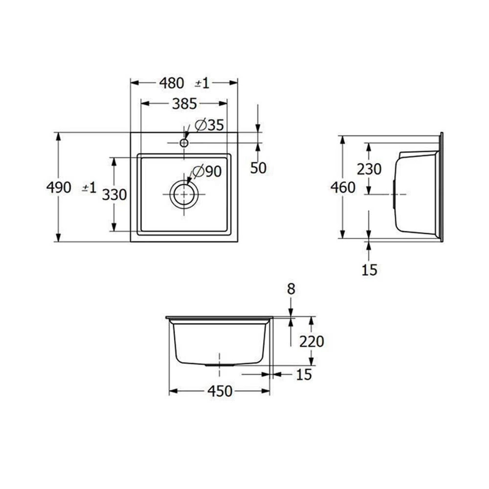 - Außenmaße: B 480 x T 490 mm