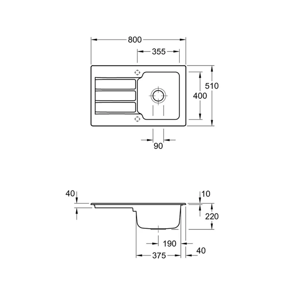 serienmäßig mit CeramicPlus Versiegelung - Spülenmaß: B 800 x T 510 mm