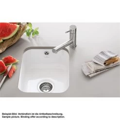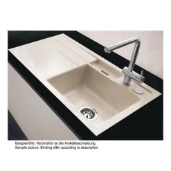 - 1 Lochbohrung für die Küchenarmatur ist grundsätzlich erforderlich (und im Lieferumfang und Preis enthalten)