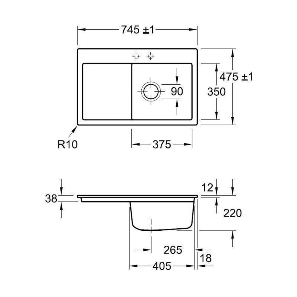 - Spülenmaß: B 745 x T 475 mm