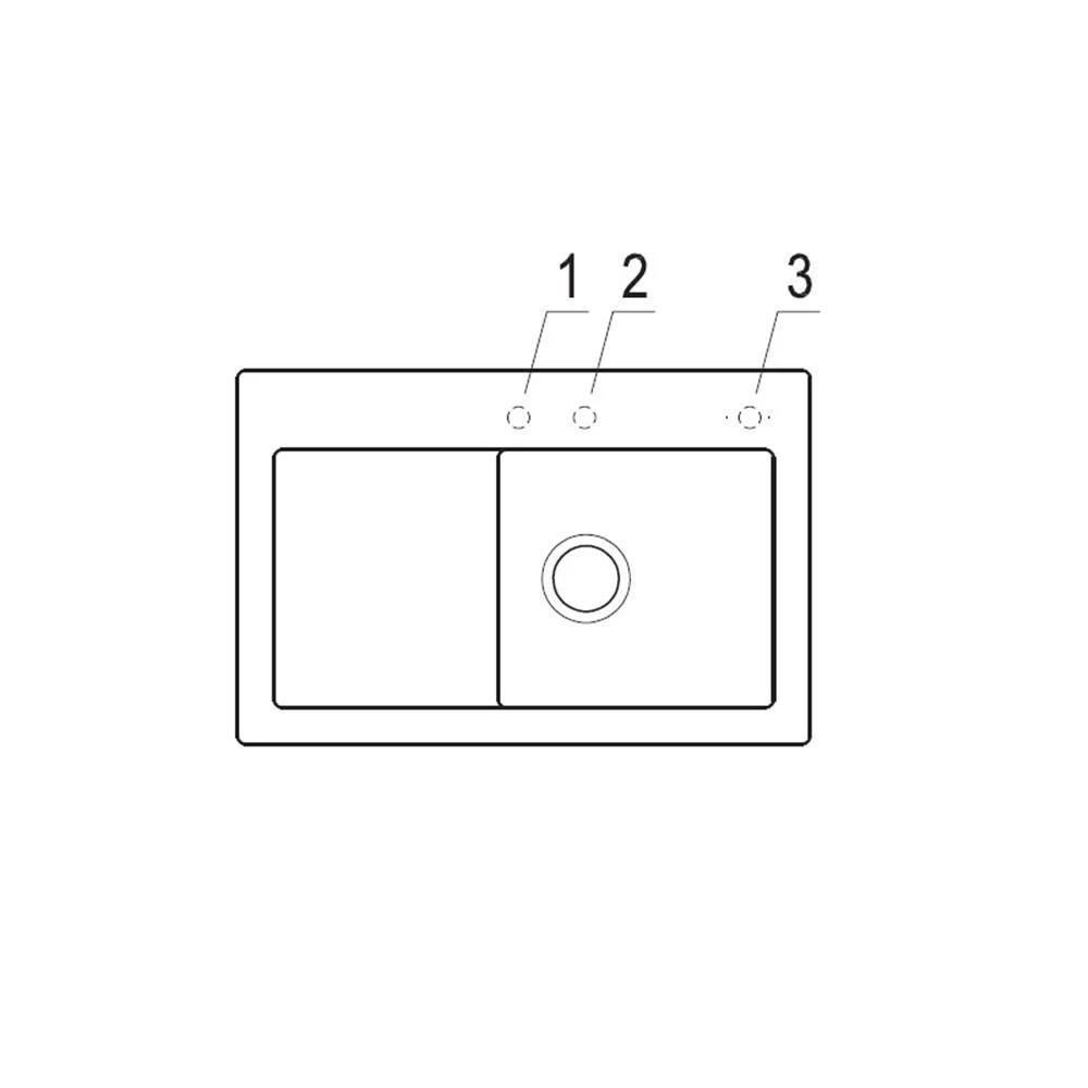 - Zusätzliche Bohrung, zum Beispiel für Spülmittelspender möglich (beachten Sie hierzu die Skizze mit den möglichen Bohrungen)