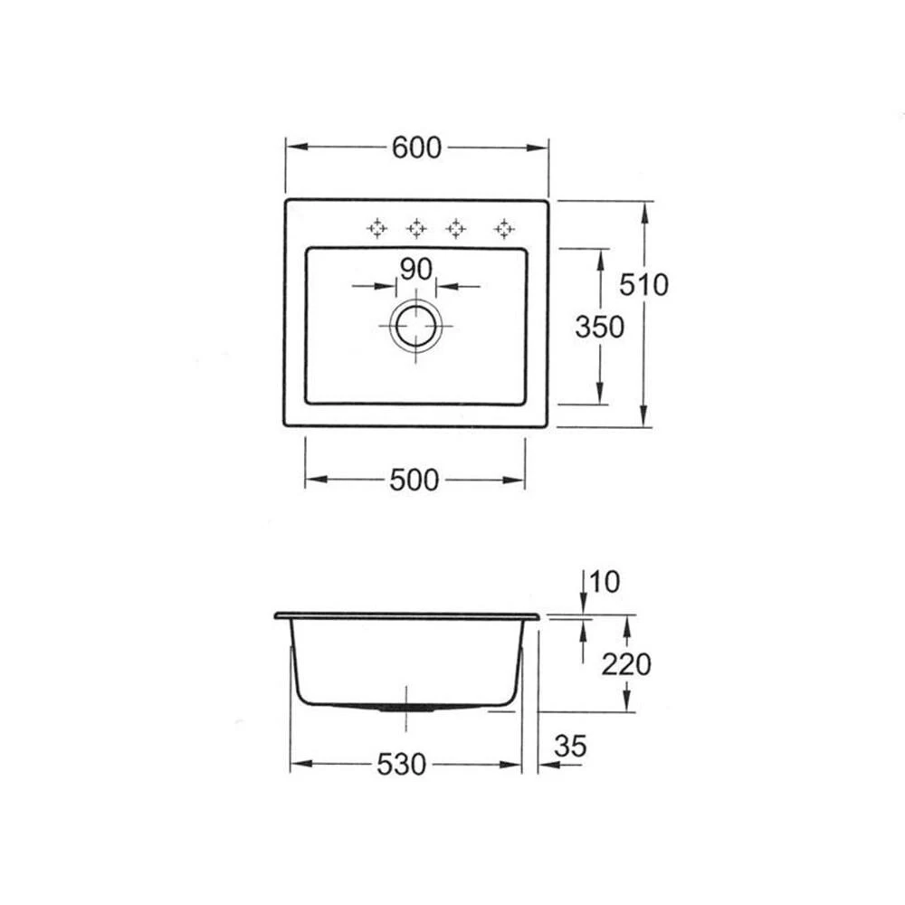 serienmäßig mit CeramicPlus Versiegelung - Spülenmaß: B 600 x T 510 mm