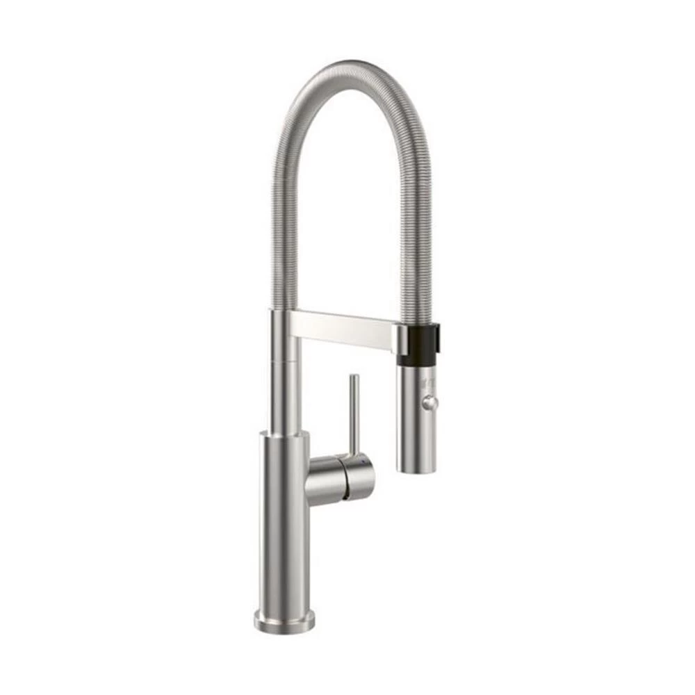 Die markante Edelstahlkollektion Steel Expert von Villeroy & Boch bietet eine Armatur mit viel Platz für Küchenprofis. Die flexible Brause macht auch das Spülen großen Geschirrs mit dem Brausestrahl ganz einfach. Der Laminarstrahl hingegen sorgt für spritzloses Reinigen von Obst.